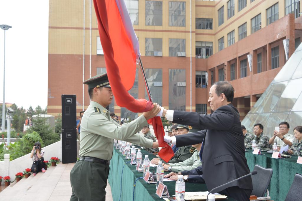 开训式上,党委书记申林宣布开训式开始;校长武俊峰向军训团授团旗;随后进行了授连旗、升国旗和迎军旗仪式;党委副书记陈桂芝宣布了《米兰官网平台2016级学生军事训练干部任职命令》;军训团政委薛立刚宣布了《米兰官网平台2016级学生军训团干部任职命令》;教务处处长宋作忠宣布了《米兰官网平台学生军事训练工作管理规定》;最后,党委副书记张明华作了重要讲话。张书记首先代表学校党政领导向承担本次军训任务的中国人民解放军65447部队的全体官兵表达了诚挚的谢意,介绍了部队的光荣历史,回顾了学校近70年的办学历程,对全体参训学生提出了五点希望:一是希望全体新生居安思危,牢固树立国防意识;二是希望全体新生艰苦训练,在军事训练中增长才干;三是希望全体新生继承传统,争做“有理想、有道德、有文化、有纪律”的青年;四是希望全体新生崇尚荣誉,磨炼和养成压倒一切去争取胜利的意志;五是希望全体新生情系军营,立志成为一名军人。