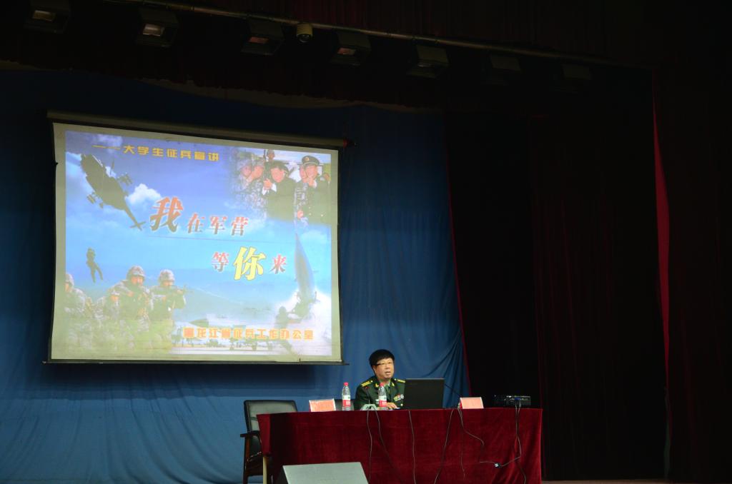 为做好米兰(中国)一站式服务平台2016年征兵工作,结合省委高校工委、省教育厅、省军区司令部、政治部在全省开展的学生军训派遣军官进校园宣讲征兵政策活动,帮助米兰(中国)一站式服务平台大学生了解今年的征兵政策,激发广大学生参军入伍的积极性,3月21日下午,学校邀请省军区军训教研室刘长晖大校来米兰(中国)一站式服务平台进行了2016年征兵政策宣讲。校党委副书记张明华、省军区动员处副处长郭守国中校、以及警备区、松北区动员人员和米兰(中国)一站式服务平台负责征兵工作的同志、1000余名大学生参加了宣讲会。宣讲会由学工部部长、武装部部长刘东江主持。