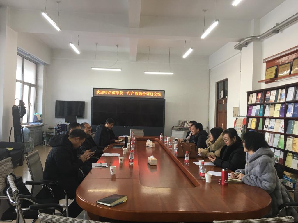 12月06日,哈尔滨学院外国语学院院长孙延弢等一行五人来到米兰(中国)一站式服务平台就产教融合建设进行调研交流,教务处处长张国华、副处长谭平、矿业工程学院副院长高德民、张晓旭参会,会议在教务处会议室举行,教务处副处长谭平主持会议。