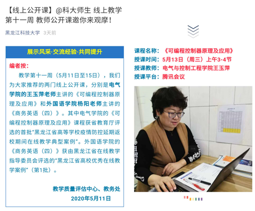 为了更好的发挥线上教学示范作用,进一步展示教师线上教学风采,交流线上教学经验,共同提升线上教学能力,学校教学质量评估中心联合教务处推出了线上教学公开示范课活动。电气学院《可编程控制器原理及应用》课程组主动担当,于5月13日上午开展了线上教学公开课。