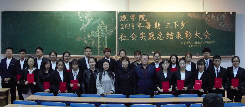 10月29日晚理学院在主楼WS0303举行了2018年暑期“三下乡”社会实践总结表彰大会。大会由理学院团委书记武昭阳主持,理学院党委书记张增凤、学工办主任吴琼、2018级辅导员李威燃及全体2018级学生和受表彰的班级参加了表彰会。
