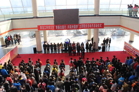 3月5日是第51个“雷锋纪念日”,也是第15个“中国青年志愿者服务日”。3月5日中午,由校团委主办的以“青春志愿行、共筑中国梦”为主题志愿服务活动月启动仪式在主楼阳光大厅举办,校党委常委、副校长陈桂芝出席活动。学工部部长、学生处处长刘东江,校团委书记薛立刚、校团委副书记苗雨及二级院(系)分团委书记、部分校级学生干部及1000余名青年志愿者参加此次活动。启动仪式由校团委宣传干事周恩远主持。