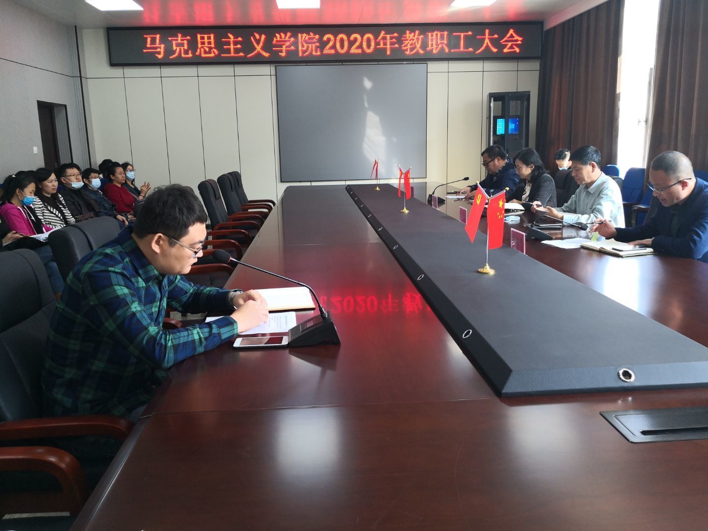 9月29日中午,马克思主义学院在科技大厦二楼会议室召开了2020年教职工大会。学院全体教师参加了会议,会议由副院长冯德军主持。