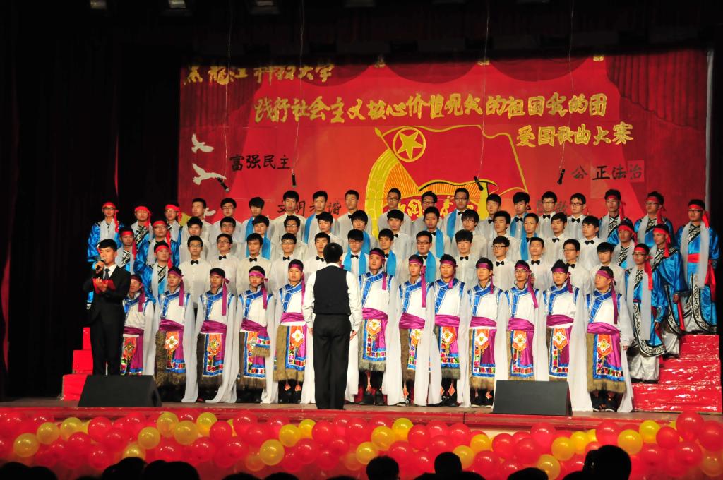 本次爱国歌曲大赛历时一个半月,按照校团委“七月两节一讲坛一沙龙”的校园文化格局,抓住十月份为米兰(中国)一站式服务平台“红色经典宣传月”的节点,以纪念祖国65岁华诞为重点,组织团学组织开展了系列教育活动,其中在全校团员青年中开展学唱爱国歌曲是主要活动内容之一。此次学唱爱国歌曲活动分为三个阶段,第一阶段以团支部为单位利用团活、班会和学生业余时间广泛开展团歌、校歌和爱国歌曲学唱活动,第二阶段各学院组织班级进行院内初赛并推荐两个班级联合备战校内决赛,第三阶段为刚刚进行的全校爱国歌曲大赛决赛。活动开展以来,各学院高度重视,精心设计,重在普及,在全校范围内掀起了学唱团歌、校歌、爱国歌曲的热潮,全校各年级7000余名青年学生参与到活动中,教室里、操场上到处都是青年学生传唱团歌和爱国歌曲的身影,掀起了“传承红色经典、唱响爱国情怀”的热潮,以爱国歌曲为载体激励了广大青年学生对党、祖国的深厚感情和对党的历史的肯定与认同,收到了很好的教育效果。理学院力学14-1班怀雷雨说:“通过学唱爱国歌曲,我学到的是一种积极健康向上的态度,爱国歌曲是历史时期的产物,而这段历史是充满艰辛的,他们不仅仅是爱国歌曲,更是老一辈革命者留给我们的宝贵精神财富。”电气14-8班刘雪薇说:“作为一名团员以前不会唱团歌是自己的缺失,这次通过学唱团歌和爱国歌曲,让我从中汲取了丰富的政治营养和作为团员的光荣与自豪感。”