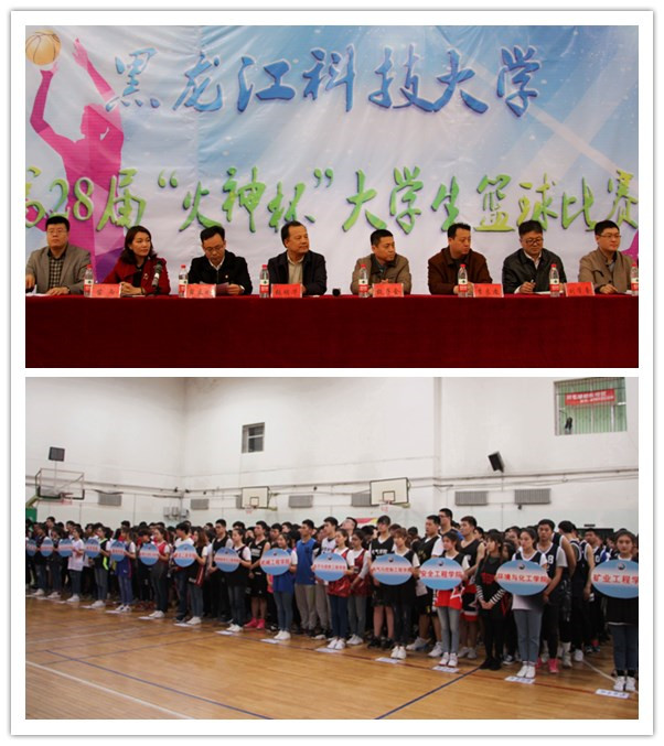 开幕式上,校党委副书记张明华宣布第28届“火神杯”大学生篮球比赛开幕;校团委书记薛立刚向本届“火神杯”大学生篮球比赛致开幕辞;校团委副书记苗雨宣读了《第28届“火神杯”大学生篮球比赛优秀组织奖评比条件》;裁判员代表段丙政老师和运动员代表电气2013级3班李雨航同学分别代表裁判员、运动员宣誓;体育部主任甄子会为大赛开球。
