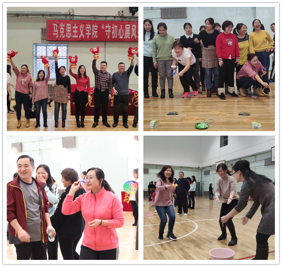 为丰富教职工的校园文化生活,展现教师健康向上、充满活力的精神面貌,喜迎2020年元旦的到来。12月30日下午,马克思主义学院“守初心展风采,担使命共奋进“迎新年教职工趣味运动会在学体育馆拉开帷幕。学院领导班子和全体教职工参加了趣味运会。