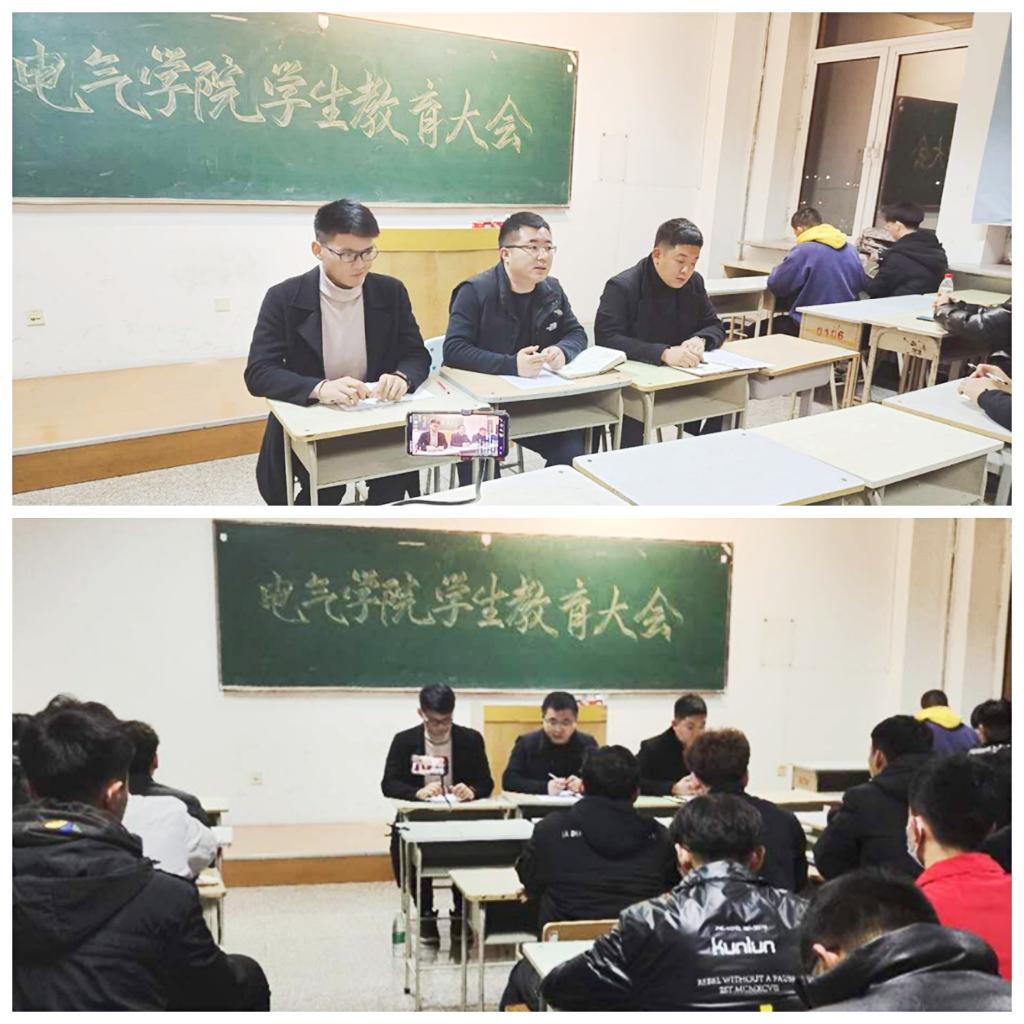 为进一步强化学风建设,持续深化大学生思想政治教育,11月2日晚,电气学院组织召开了2019级学生教育大会,会议采取线上线下相结合的方式同步进行,各班级班长、生活委员参加线下会议,其他学生通过抖音直播参加。电气学院辅导员韩大伟、徐岳参加会议。
