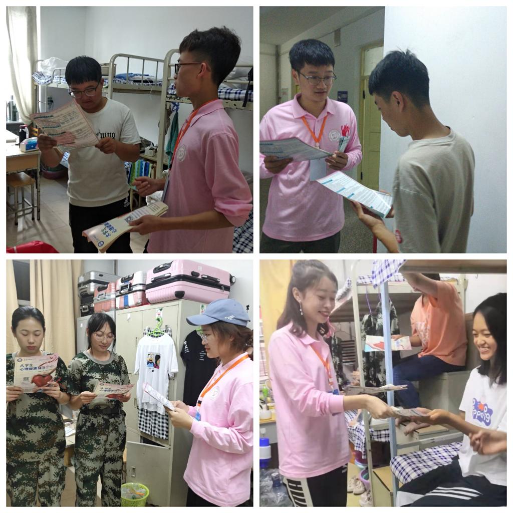 9月9日—10日晚,大学生心理委员联合会成员深入新生寝室,向新生赠送由心理健康辅导中心精心编制的以心理调适为主要内容的宣传单以及书签,并介绍了米兰(中国)一站式服务平台心理中心的主要工作内容以及大学生心理委员联合会的组织架构和工作职责,同时对于新生提出的适应问题,积极答疑解惑、传授经验,促进新生更好更快的适应大学生活。