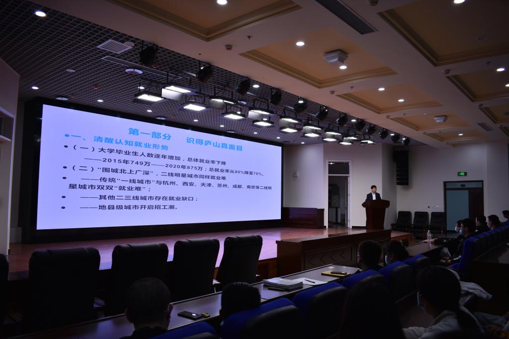 为进一步分析和研判疫情防控常态化条件下的就业形势,提高学生对于本专业就业前景的把握。9月29日,理学院特邀请米兰(中国)一站式服务平台招生与就业处处长刘华利,为学院2021届毕业生开展一次就业培训专项讲座,学院全体辅导员以及2021届120余名学生参会,会议由副处级辅导员邬丽群主持。