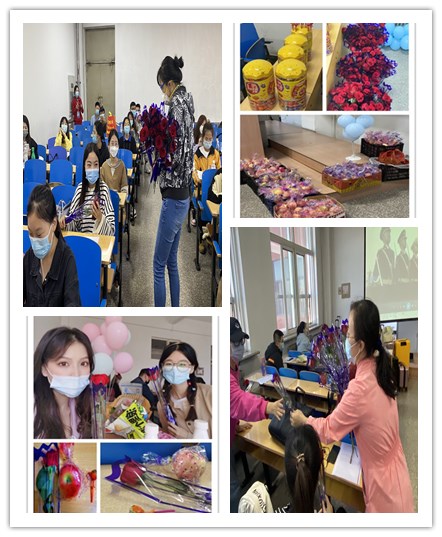 清早,学院领导、老师在隔离教室门前等候,为学院返校学生送上鲜花,祝福同学们平安回家。