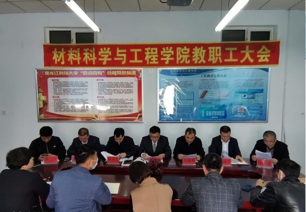 会议听取了院长王振廷题为《稳中求进 进中求新 奋力谱写材料学院华丽新篇章》的行政工作报告。报告回顾了2019年各项工作,总结了成绩,分析了不足。同时,从强化教学中心地位、打造优质师资队伍、提升学科建设和科研水平、推进人才质量、完善内部管理体系五个方面,科学谋划了2020年重点工作任务。