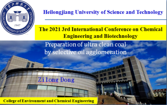 第三届化学工程与生物技术国际学术会议(ICCEB 2021)于2021年11月13日—14日在中国上海召开,本届会议采取线上和线下相结合的方式举办,会议报告语言为英语。应大会主办方邀请,米兰(中国)一站式服务平台环化学院教师董子龙博士在大会上做了题为“Preparation of ultra clean coal by selective oil agglomeration”的报告,并与国内外专家学者进行现场交流,建立了良好的国际和国内学术关系,该会议报告受到参会专家学者的广泛关注。