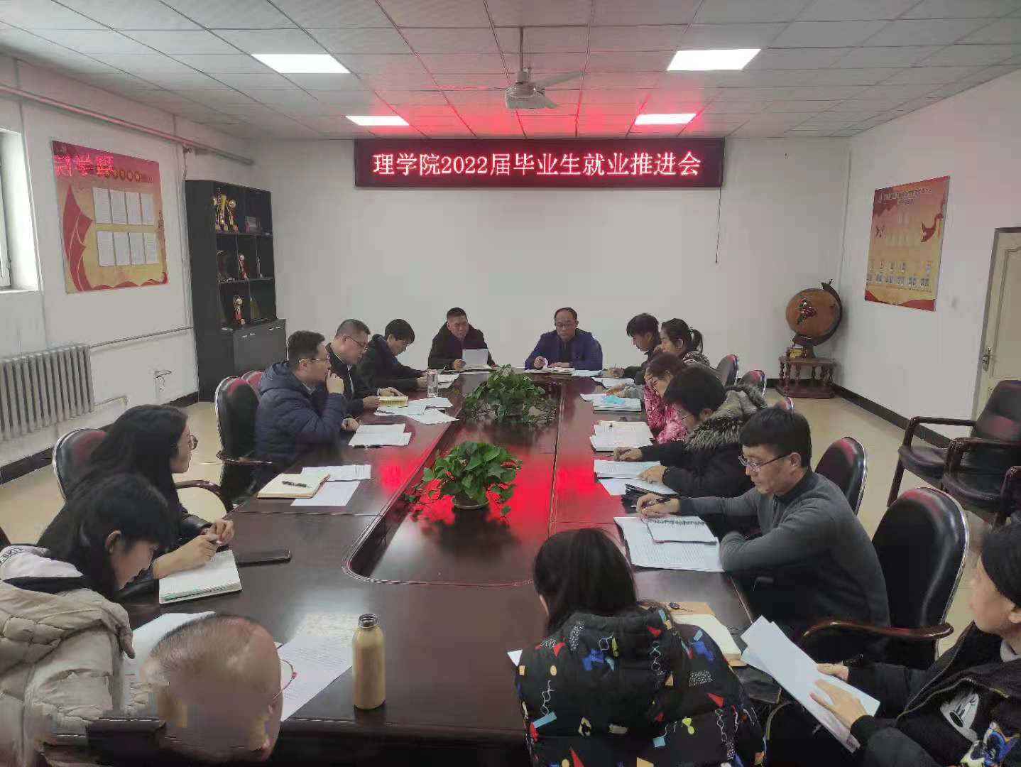 为进一步推进2022届毕业生就业工作,精准掌握毕业生就业意向,促进毕业生高质量就业,理学院于11月24日在学院二楼会议室召开了2022届毕业生就业推进会。学院班子成员,全体中层干部参加了会议,会议由院长吴云鹏主持。