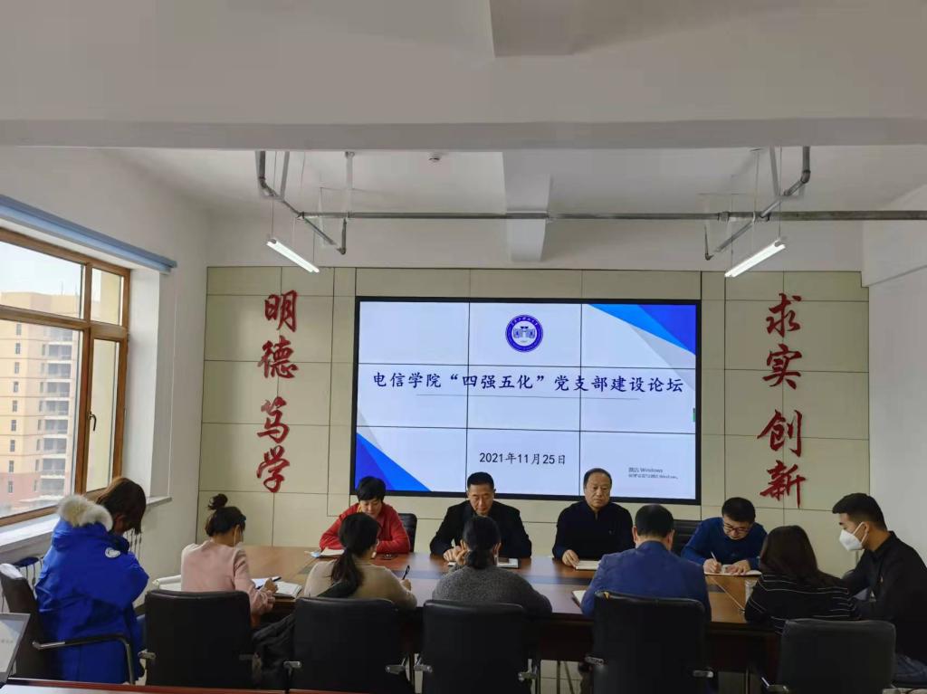 11月25日,电信学院党委在朝阳楼0809会议室召开“四强五化”党支部建设论坛,学院领导班子成员,各党支部书记参会。