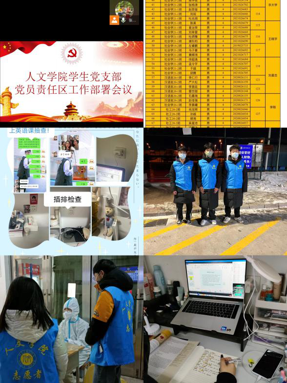 二、冲锋在前,勇于担当。校园静态管理期间,传播我是党员我宣传的教育引导正能量,关注最新疫情防控知识,自觉做科学的传播者、谣言的粉碎者,主动在同学中宣传学校疫情防控相关管理规定,带领身边同学配合、支持学校疫情防控工作;传播我是党员我先行的志愿服务正能量,党员志愿者以大白小蓝的身份出现在核酸检测、校园安全巡逻工作中,确保核酸检测快速有序,全员覆盖,共同营造健康有序的校园环境;传播我是党员我负责的管理服务正能量,每日做好党员责任区文明寝室验收、消防安全检查、防疫消毒落实、网课学习督促、夜不归寝检查等工作,确保静态校园管理期间学习、生活有序开展。