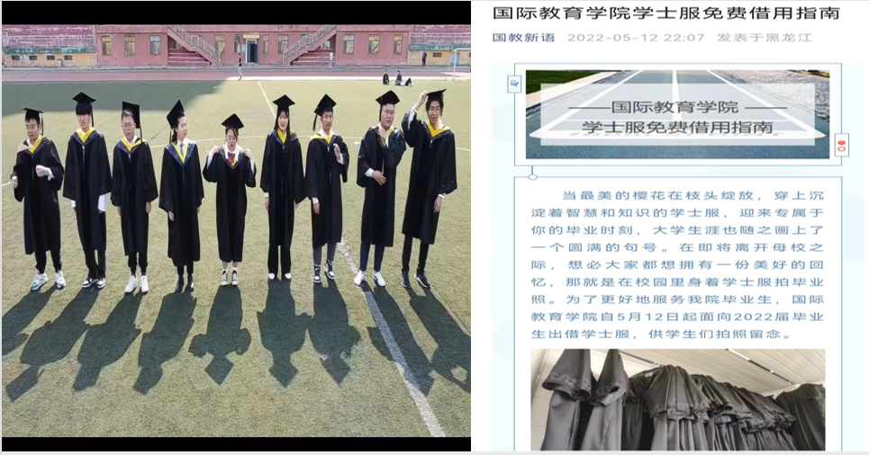 为更好的关心、帮助、服务毕业生,学院5月12日起面向2022届毕业生开放了“学士服”的借用,通过无偿借用毕业生学士服,协助毕业生拍摄毕业照等方式,营造积极营造毕业季和谐温馨、文明尚善的校园文化氛围。