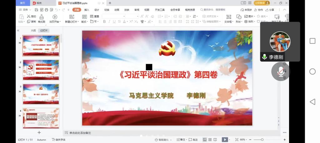 广泛覆盖,确保实效。邀请马克思主义学院教师、校《习近平谈治国理政》第四卷宣讲团成员李德刚老师为学院师生作了《习近平谈治国理政》第四卷专题辅导报告会。精心组织安排,将《习近平谈治国理政》第四卷纳入“三会一课”、主题党(团)日活动等的重要内容,开展了“讴歌时代主旋律 喜迎党的二十大”“喜迎国庆,感念党恩”等形式多样的学习宣传活动;将《习近平谈治国理政》第四卷学习宣讲纳入分党校教学计划,班子成员和支部书记带头到所在支部和联系支部讲专题党课7场次,线上线下开展“送学”活动;利用教职工大会、教职工政治理论学习、班会和学院网站、公众号等推送学习“资料包”,点燃起学习“星星之火”,确保干部师生党员学习全覆盖。
