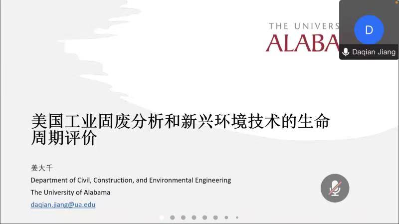 姜大千教授通过“腾讯会议”网络平台带来了一场题为《美国工业固废和新兴环境技术的生命周期评价》的精彩学术讲座。报告中,姜教授首先介绍了美国无害工业固体废弃物统计分析方法,预测模型以及对美国无害工业固体废弃物处置及利用的建议。随后,姜教授介绍了用生命周期评价方法评估污水生物膜技术的研究进展和发展趋势。
