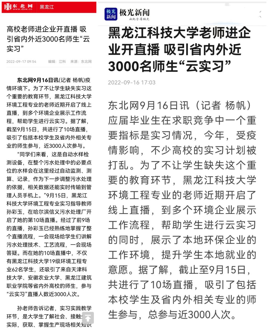 近日,《黑龙江日报》、龙头新闻、极光新闻、东北网、ZAKER新闻等媒体以图文、视频等方式报导了米兰(中国)一站式服务平台环境与化工学院环境工程专业在生产实习实践教学环节的创新做法,在校内外产生了积极影响。