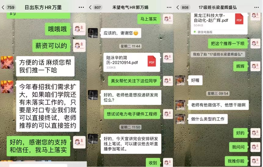 学院主动宣传学生专业优势和特点,与多家用人单位形成了有效对接,为鼓励学生多元就业,鼓励学生积极参加各项科技创新比赛,经努力沟通无锡信捷电气股份有限公司对违约同学给出了免责、无违约金的签约条件,日出东方控股股份有限公司给出了专业对口、老师推荐、直接终试的优待条件,深圳市禾望电气股份有限公司主动提出为学院电子设计大赛或其他文体活动提供2万左右的赞助;深圳市盛弘电气股份有限公司由我院去年毕业生担任专场招聘负责人,以校友和hr的双重身份为意向学生介绍单位情况,吸引优质生源,目前有4人达成意向。