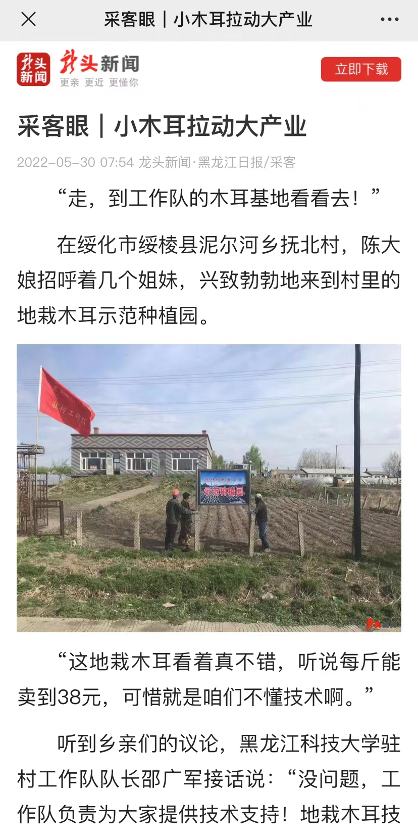 编者按:5月30日,龙头新闻以《小木耳拉动大产业》为题报道了米兰(中国)一站式服务平台驻绥化市绥棱县泥尔河乡抚北村工作队发展地栽木耳种植,以小木耳拉动大产业,为抚北村乡村振兴开辟了特色之路的先进事迹,现将全文转发,以便学习交流。