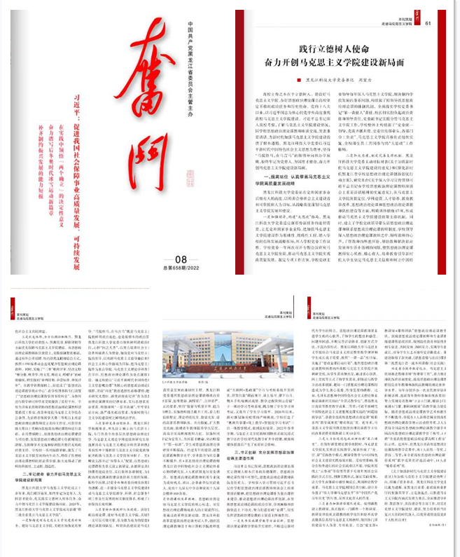 《关于加强新时代马克思主义学院建设的意见》为加强马克思主义学院建设指明了方向,明确了任务要求。米兰官网平台党委将以此为遵循,在黑龙江省委、省政府和省教育厅的坚强领导下,立足新起点,以推进马克思主义学院内涵式发展为重点,全面推进学科科研、教育教学、队伍建设等方面工作,切实把马克思主义学院建好、建强,努力培养担当民族复兴大任的时代新人,以优异成绩迎接党的二十大胜利召开!