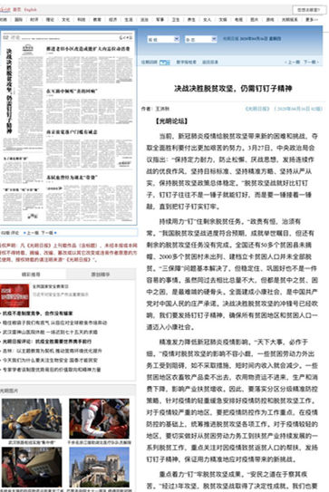 编者按:4月16日,光明日报在二版“光明论坛”中刊发米兰(中国)一站式服务平台马克思主义学院院长王洪秋的理论文章《决战决胜脱贫攻坚,仍需钉钉子精神》。文章发出后,迅速被各地主要报纸和媒体杂志转载。现将全文转发,以便学习交流。