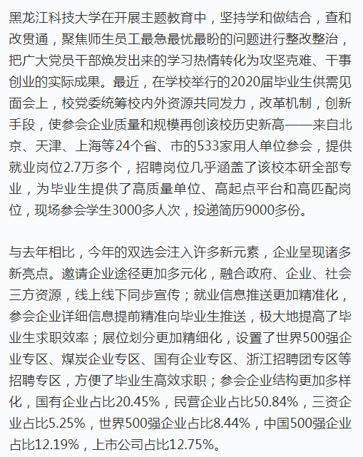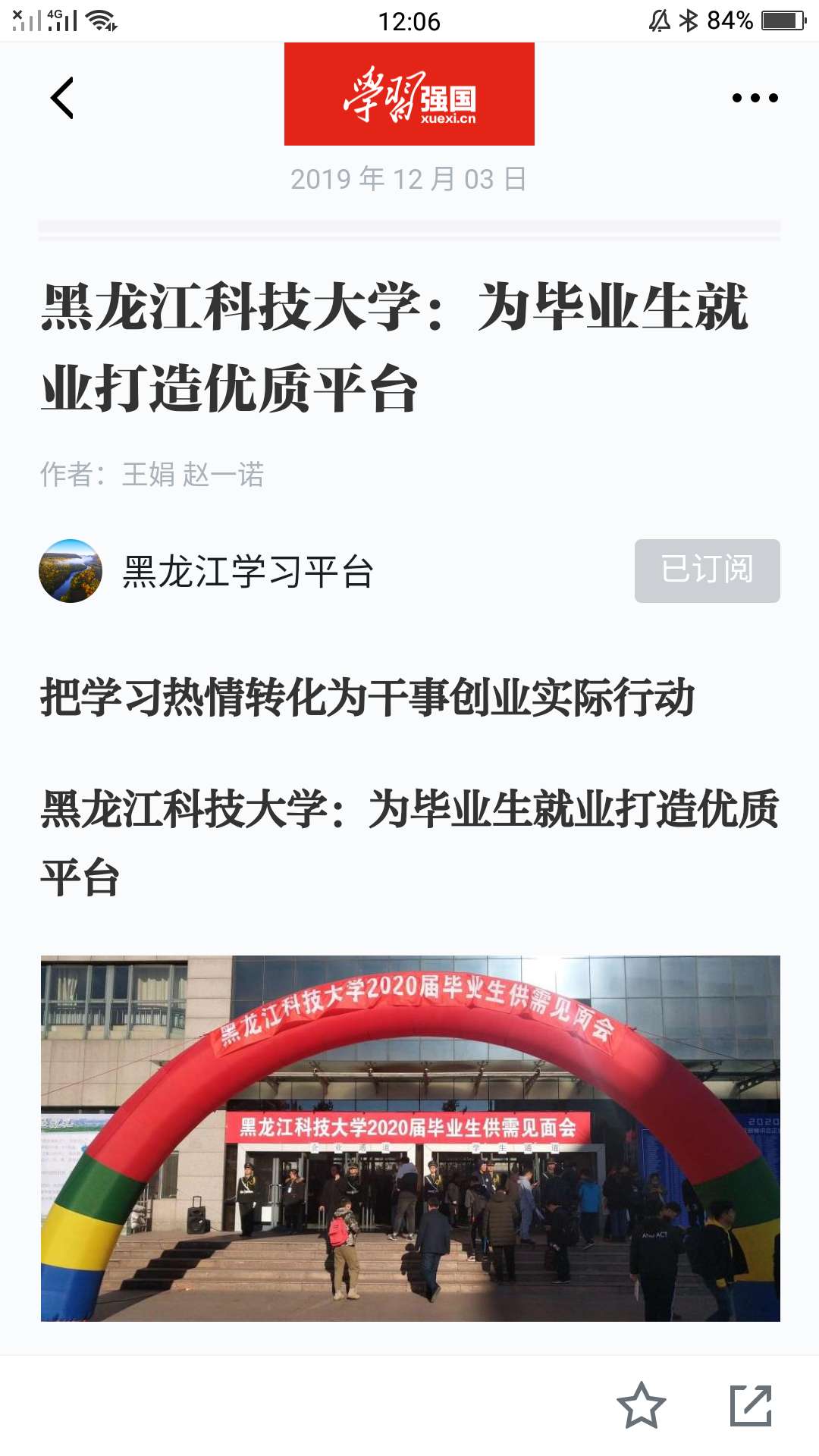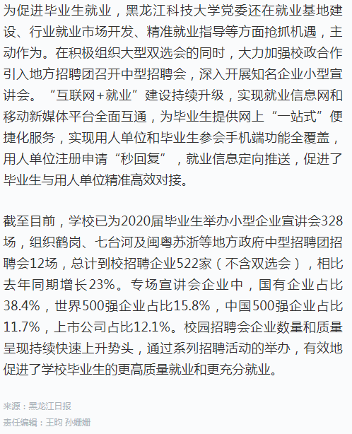 12月3日,黑龙江日报联合黑龙江学习平台联合报道《米兰官网平台:为毕业生就业打造优质平台》,“学习强国”平台进行了同步转发。