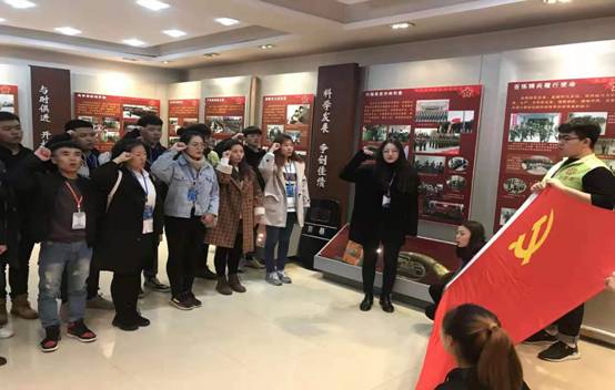告别了革命前辈,同学们又到黑龙江省军区警备纠察队,参观了荣誉室并在党旗前重温了入党誓词。