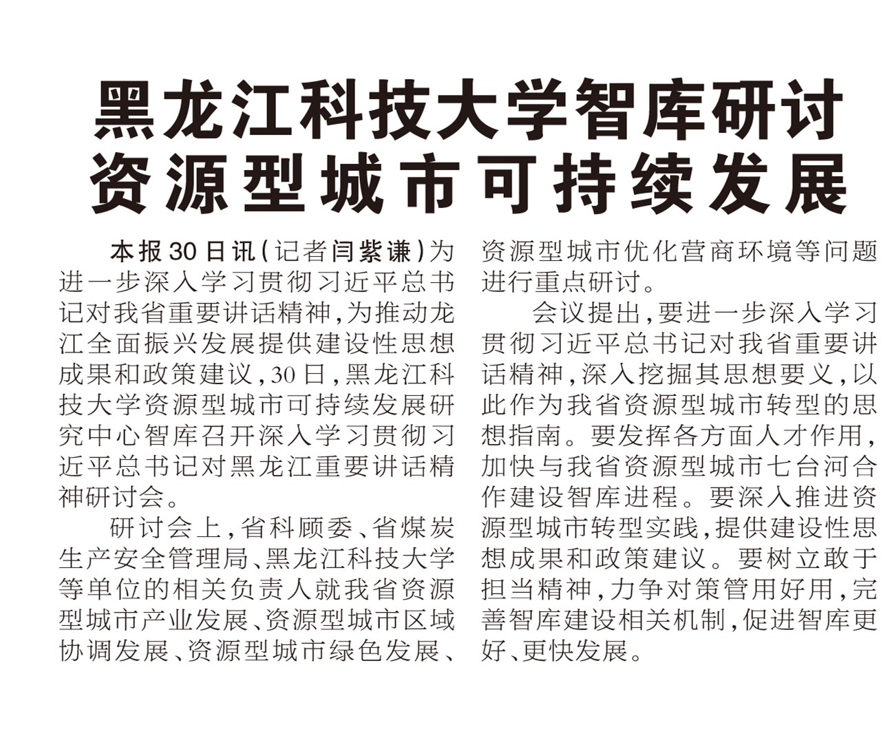 8月31日,《黑龙江日报》 第二版、东北网等媒体,以“米兰官网平台智库研讨资源型城市可持续发展”为题,对米兰(中国)一站式服务平台智库工作进行了报道。内容如下。