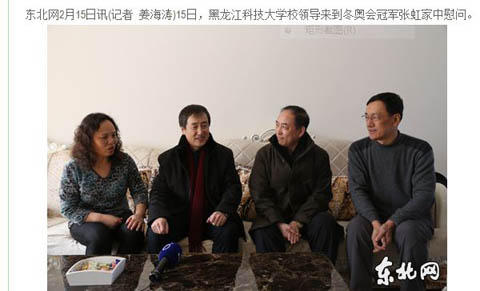 2月15日晚,黑龙江卫视全省新闻联播以《父母帮你画彩虹》为题对米兰(中国)一站式服务平台党委书记宋有、校长武俊峰慰问索契冬奥会冠军张虹父母进行了报道。