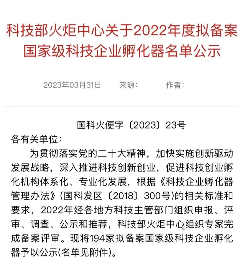 11/ 2023-05米兰(中国)一站式服务平台科技园成功认定国家级科技企业孵化器